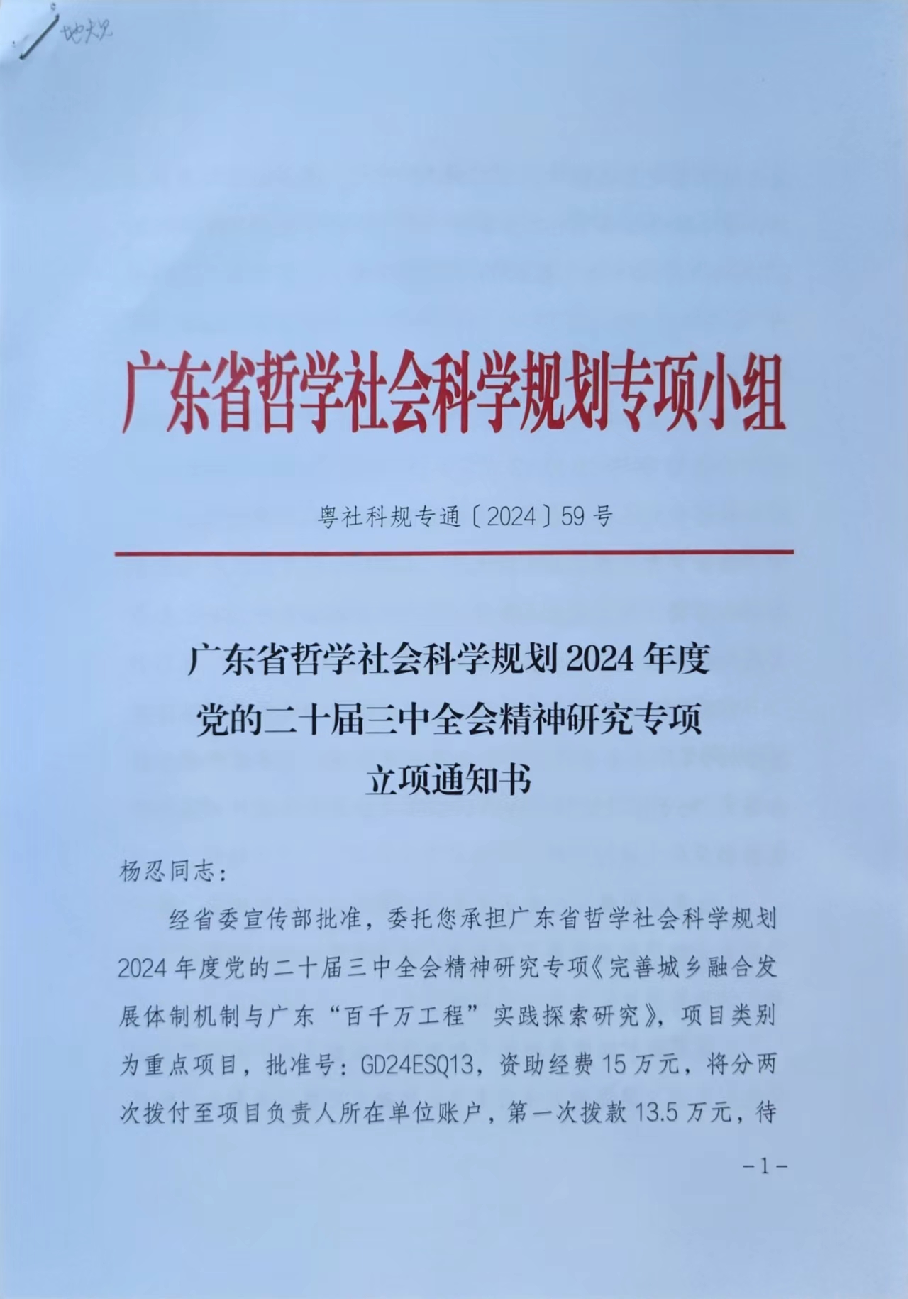 近日,收到广东省哲学社会科学规划2024年度党的二十届三中全会精神研究专项立项通知,其中,中山大学乡村振兴联合研究院执行院长、中山大学地理科学与规划学院杨忍教授作为课题负责人,申报的《完善城乡融合发展体制机制与广东“百千万工程”实践探索研究》选题获得重点类项目立项。